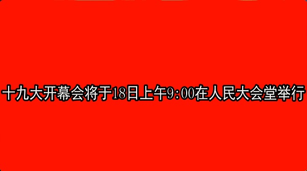 十九大开幕会将于18日上午9:00在人民大会堂举行